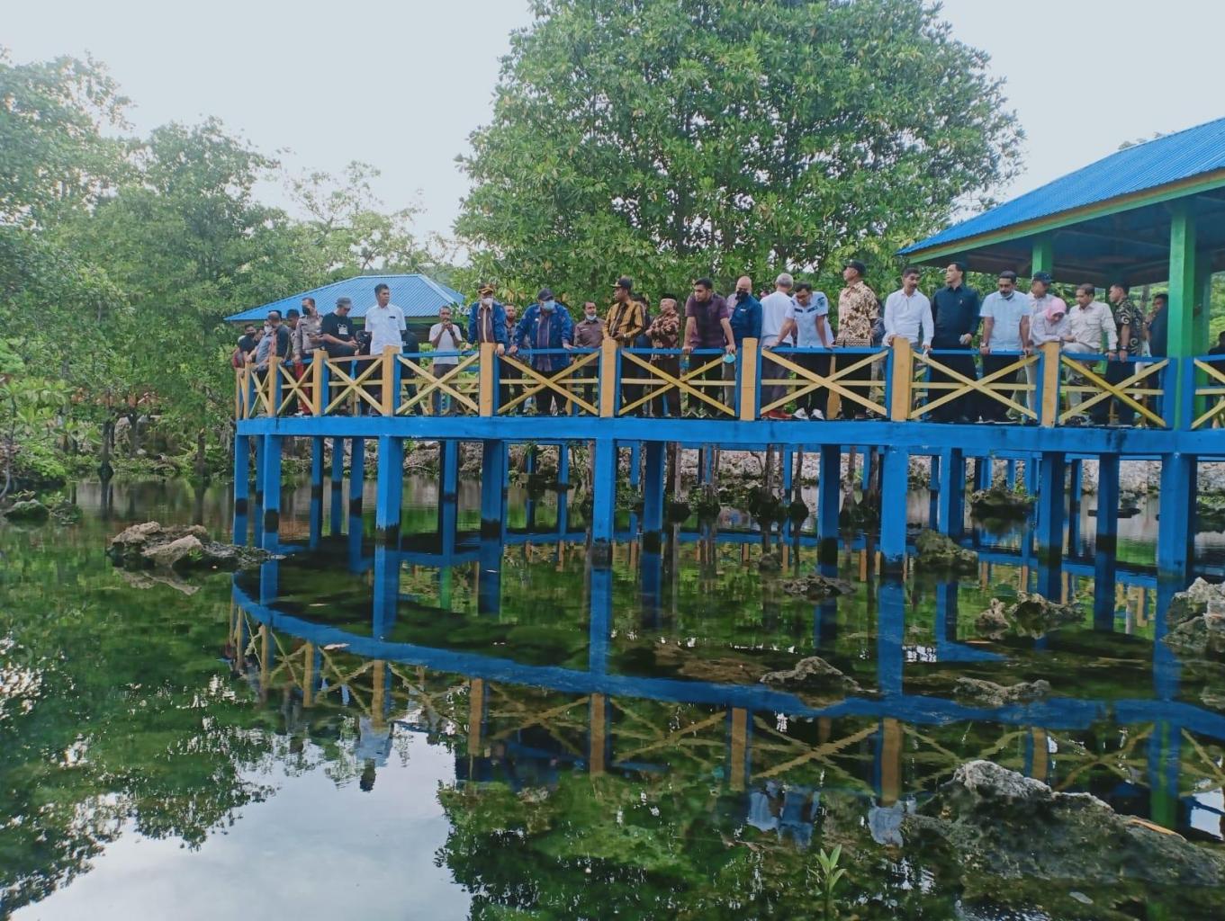 Aquarium alami menambah keindahan, Pantai Lahunduru juga disediakan jembatan lingkar untuk mengitari lokasi dan menikmati keindahan sekitar untuk berswafoto. Yang unik, yakni adanya ikan purba yang terdapat dibawah jembatan yg dapat dinikmati oleh pengunjung Konon ikan di tempat ini tidak dibolehkan masyarakat setempat untuk dipancing dan dikonsumsi, cukup diberi pakan saja.