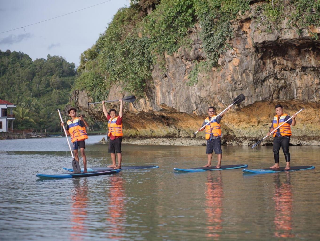 Wisatawan bisa menaiki papan dan mendayung menyusuri sungai ngiroboyo