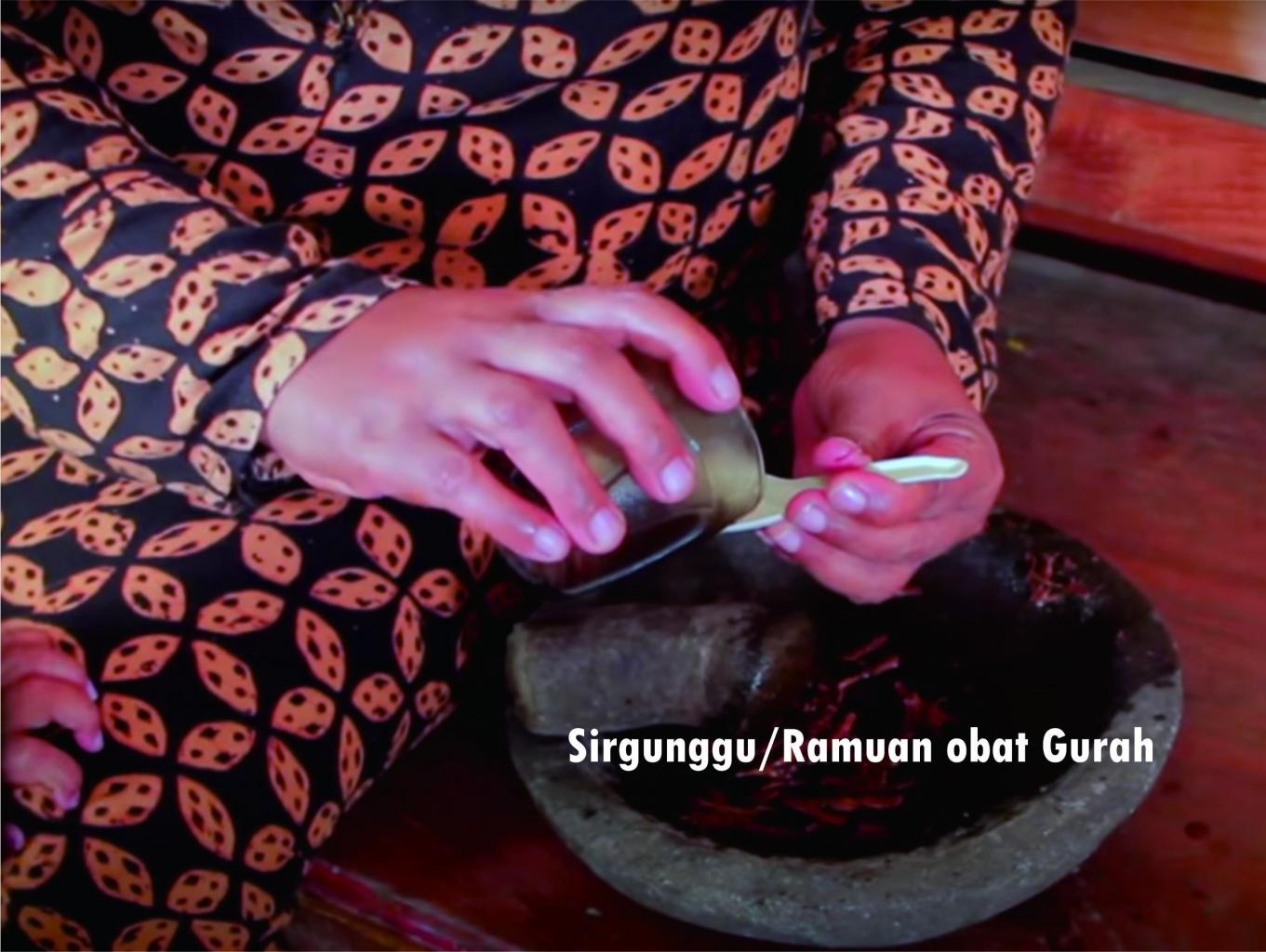 Menggunakan ramuan dari kulit akar sirgunggu dipadukan dengan doa-lafaldz tertentu, satu dua tetes cairan dimasukkan ke dalam lubang hidung pasien maka beberapa menit kemudian hidung mulai tersumbat yang kemudian diikuti keluarnya lendir kental dari hidung dan lendir agar cair dari mulut. Pasien tengkurep selama berjalannya pengobatan yang biasanya berlangsung sekitar 1-2 jam atau tergantung banyak sedikitnya cairan, kental cairnya lendir juga menetukan cepat lambatnya pengobatan.