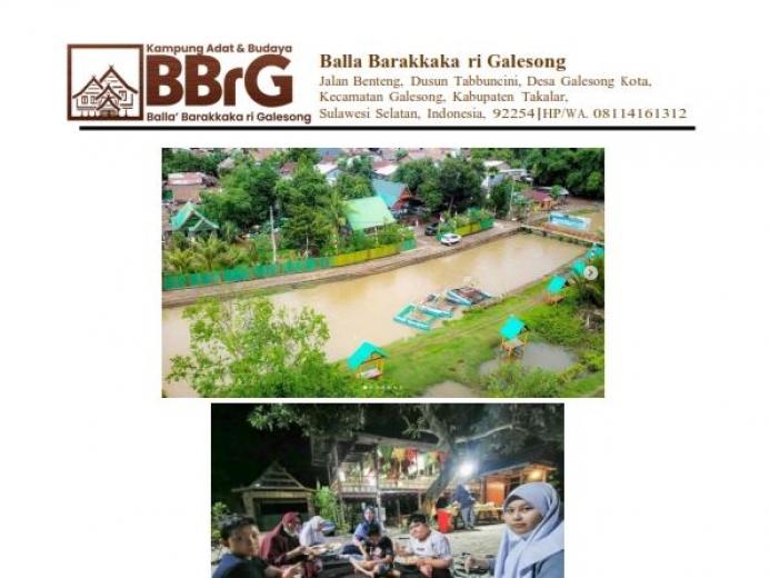 Balla Barakkaka ri Galesong (BBrG) merupakan Destinasi Wisata berbasis budaya dan Konstitusi. Desa Wisata ini berlokasi di Desa Galesong Baru Kabupaten Takalar. BBrG ini diinisiasi oleh Prof. Aminuddin Salle Karaeng Patoto, Guru Besar Bidang Hukum yang kembali ke Kampung Halamannya untuk mengembangkan dan memberdayakan serta melestarikan budaya dan nilai kearifan lokal dengan konsep “Appaka Sulapa”.