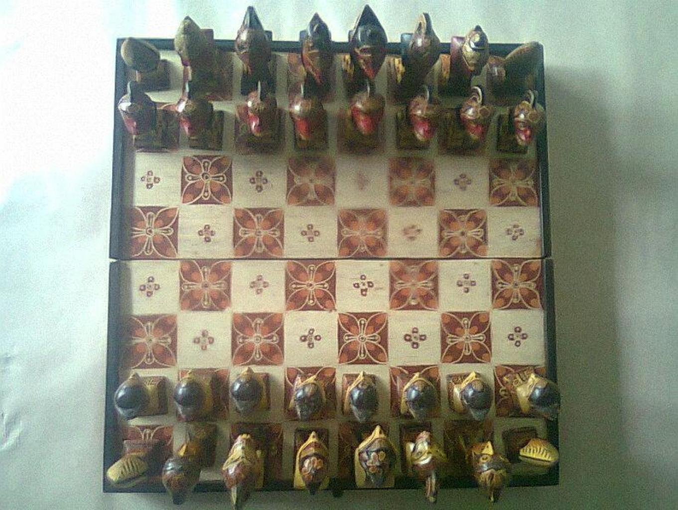 Catur batik tokoh wayang dibuat dengan proses ukir dan batik