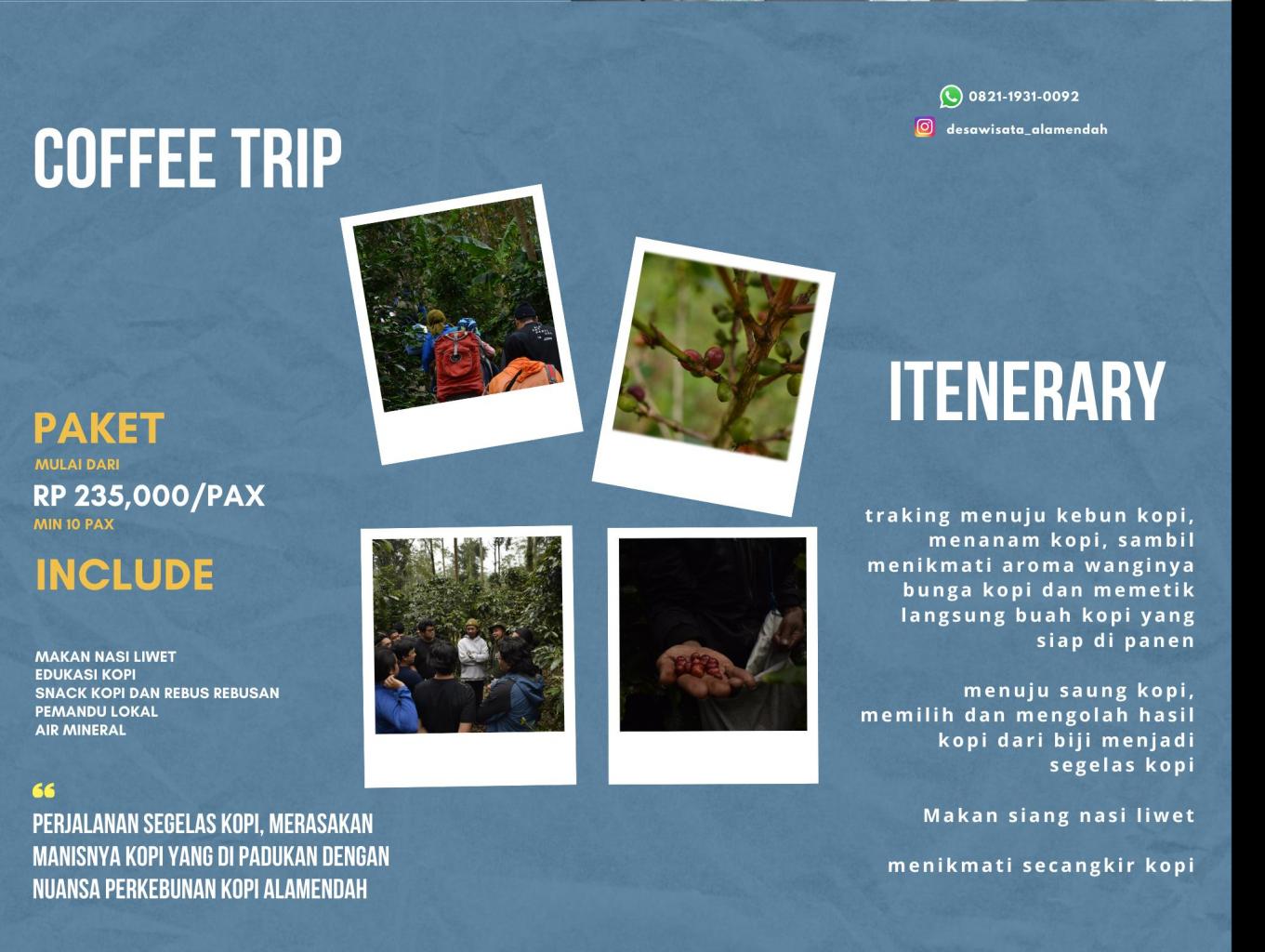 Perjalanan segelas kopi, merasakan manisnya kopi yang di padukan dengan nuansa perkebunan kopi alamendah