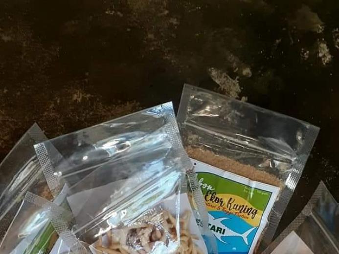 Olahan makanan dari produk pertanian yaitu tanaman pisang yang kemudian buahnya diolah oleh kelompok perempuan di kampung menjadi camilan keripik pisang. Buah pisang tersebut diambil dari kebun masyarakat kampung sapokren. Perkemasan biasanya disajikan dengan berat per 100gr dengan harga Rp. 10.000. Cemilan buah pisang ini sangat renyah dan dapat dijadikan oleh-oleh dari Kampung Sapokren bagi para wisatawan.