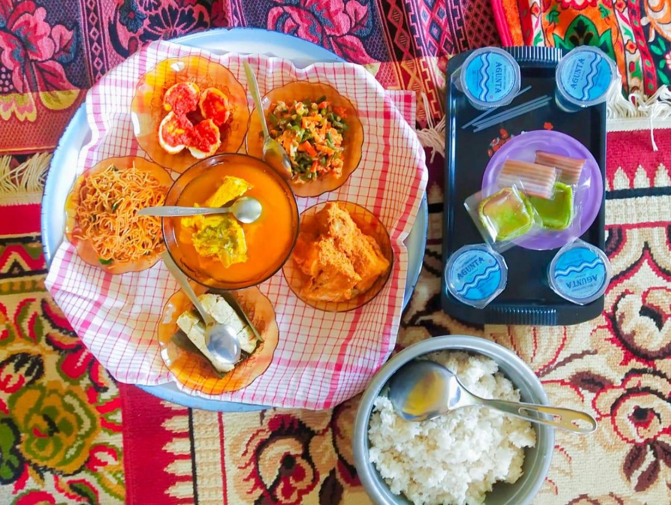 Makanan yang disajikan terdiri dari 4 hingga 6 macam lauk, lengkap dengan nasi putih dan sambal. Menu paling utama adalah gagan, ikan berkuah kuning khas Belitung. Saat disajikan, makanan tersebut masih tertutup tudung saji. Ada etika saat tradisi ini berlangsung, dimana orang yang paling tua akan membuka tudung saji. Sementara orang yang paling muda bertugas dalam pembagian piring. Seiring berjalannya waktu, makan bedulang dilakukan pada acara tertentu dan orang tertentu saja. Misalnya untuk orang penting pada saat acara adat, syukuran, pernikahan, kelahiran, atau sunatan.