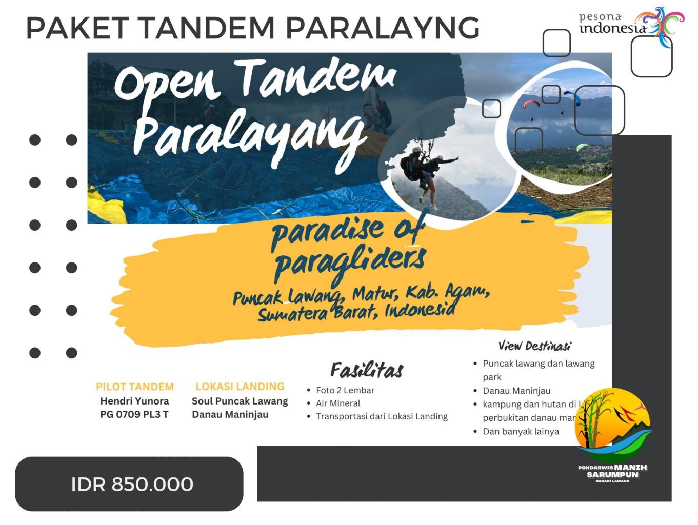 Nah ini mimin mau kasih info kalau @pesona_lawang Open Tandem Paralayang loh, ada 3 paket yang mimin sediakan.