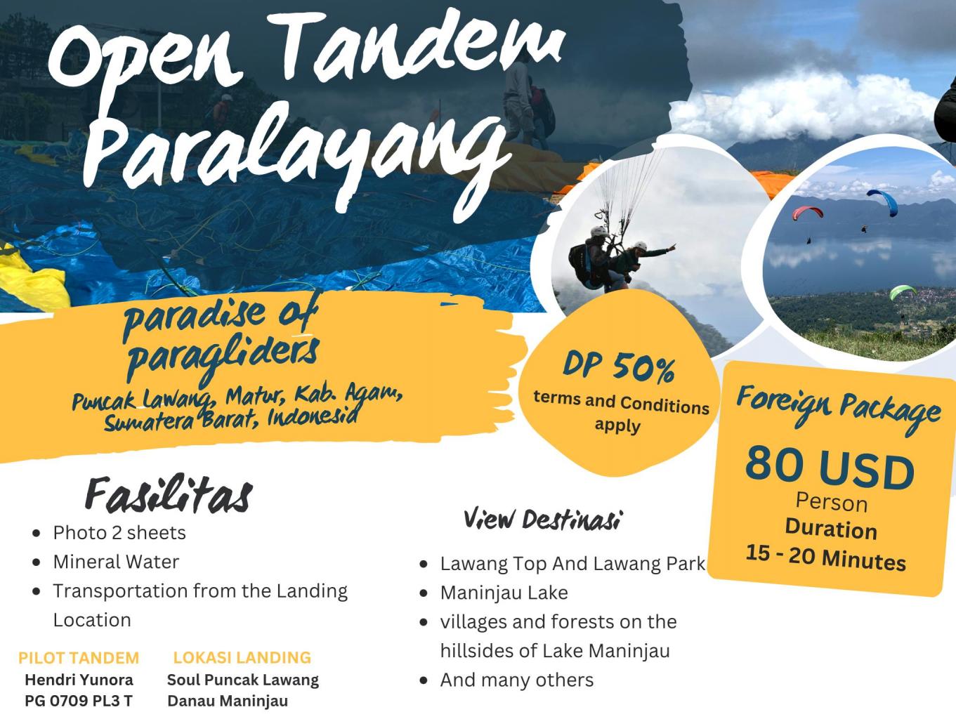 1. Paket paralayang untuk wisatawan Asing