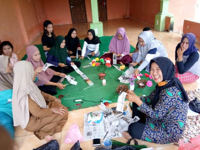 Pembuatan pot bunga dari bahan bekas