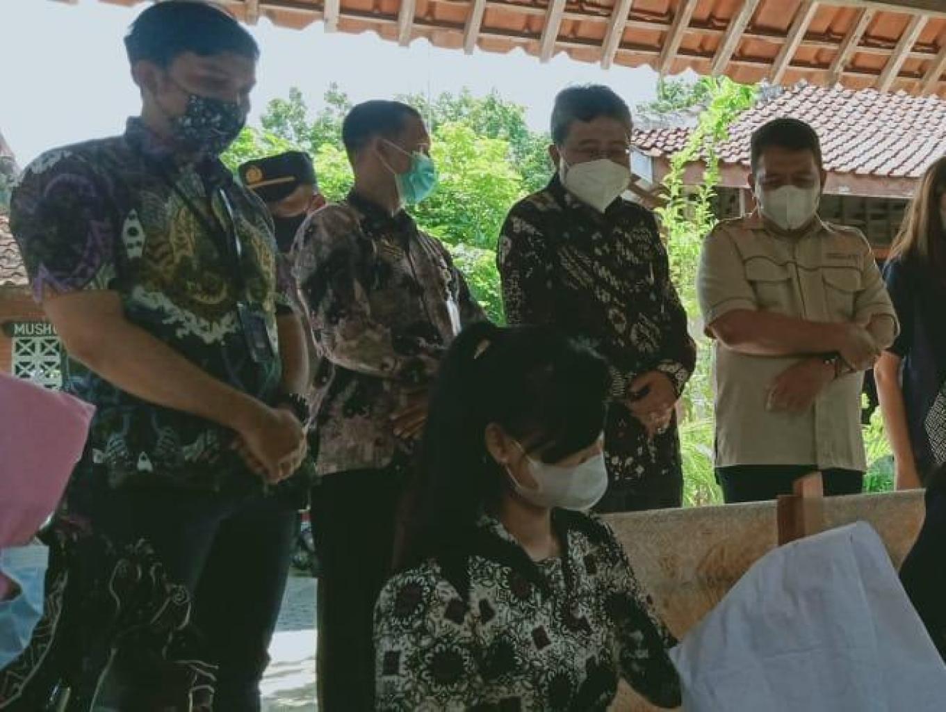 Di sela sela kunjungan Tim Wamen Parekraft di Gazebo batik Giriloyo memyempatkan praktek membatik di atas media kain 30x 30 Cm yang biasa dijadikan paket edu wisata batik desa wisata Wukirsari