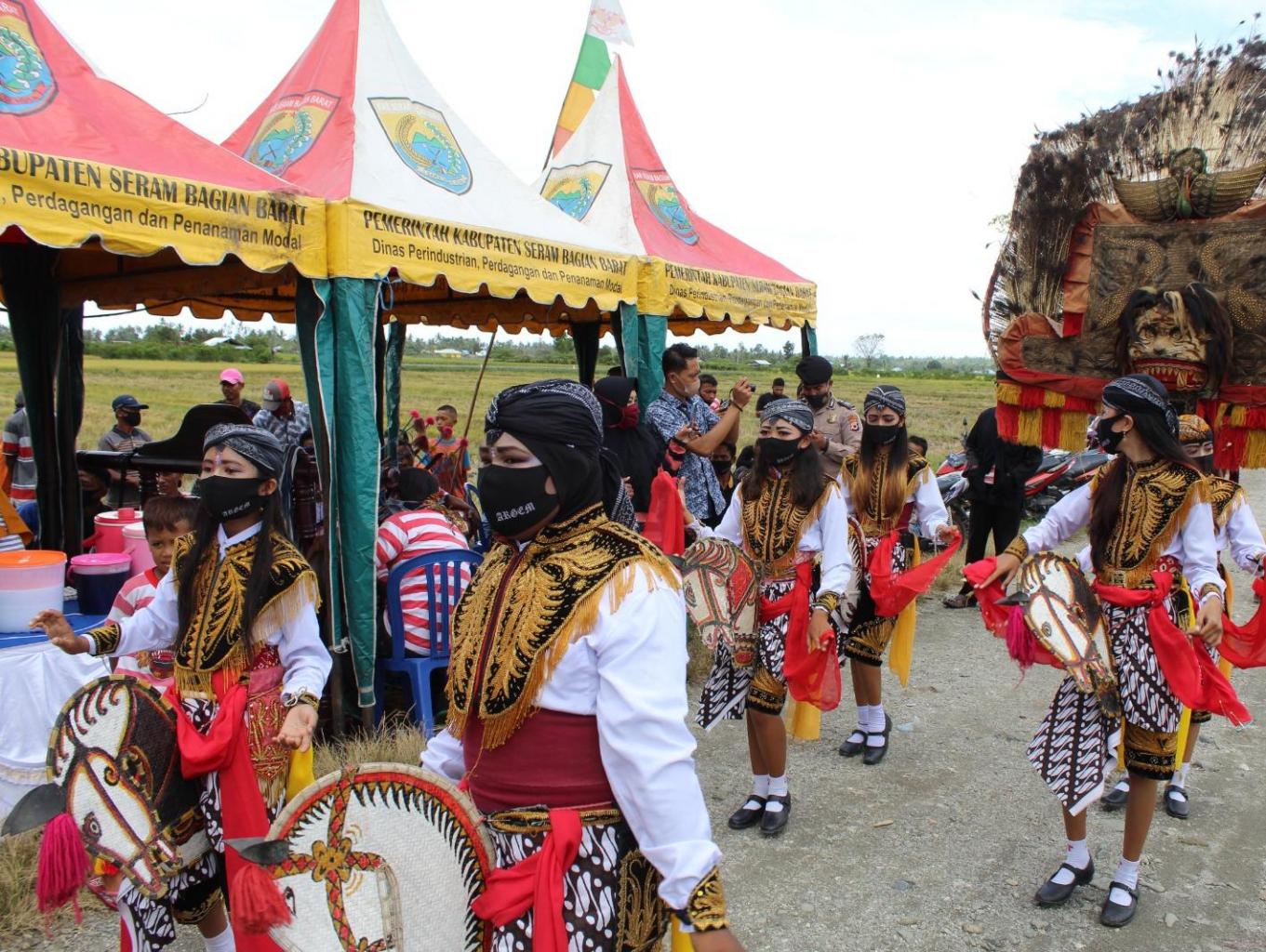 Tarian Kuda Lumping menggunakan kuda tiruan yang terbuat dari bambu atau bahan lainnya yang di anyam dan dipotong menyerupai bentuk kuda. Kuda ini dihiasi dengan cat dan kain beraneka warna.