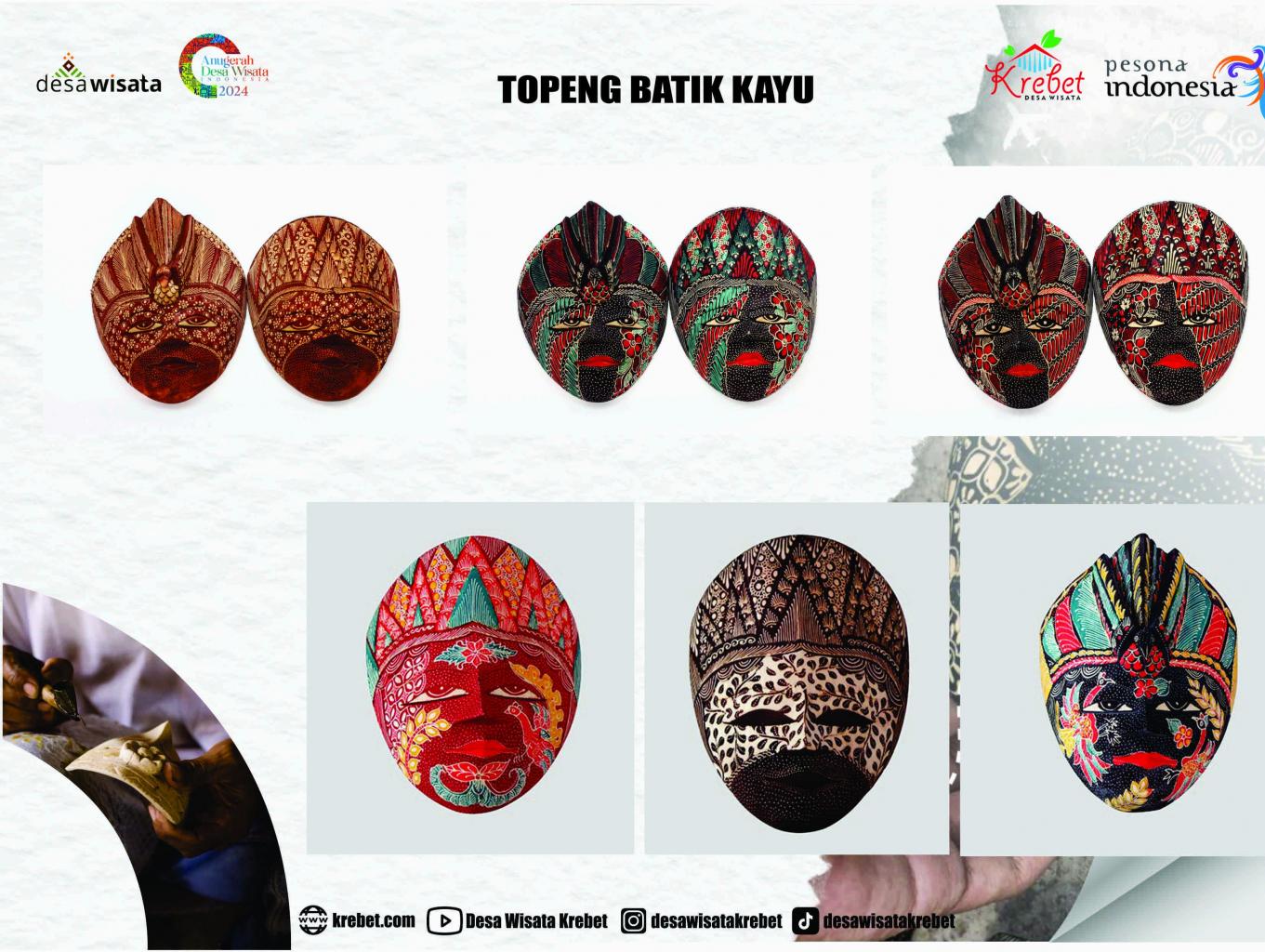 Berikut adalah beberapa ciri khas dan proses pembuatan topeng batik kayu: